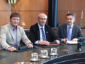El acuerdo se firmó el pasado 3 de abril en la sede de Caja Rural de Granada por parte de Antonio Martín, presidente del Colegio, y de Antonio Ruiz, director de Gabinete Técnico y Desarrollo de Negocio de Caja Rural de Granada. Asistieron también al acto de la firma por el Colegio Genaro Sánchez, vicepresidente, y José Balderas, tesorero y vocal de Formación; y por Caja Rural de Granada, Pedro Rivero, jefe de Productos y Canales.