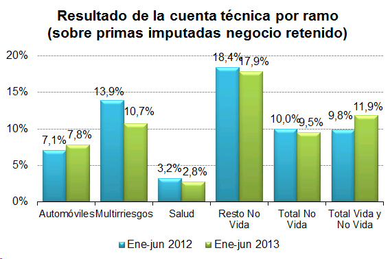 No Vida el resultado de la cuenta técnica fue del 9,5% de las primas imputadas retenidas, medio punto menos, mientras la tasa de siniestralidad se situó en el 68,9%. En Vida, el resultado de su cuenta técnica del 0,88% sobre provisiones. “No obstante, si efectuamos nuestro análisis sobre el negocio retenido, obtenemos un resultado sobre provisiones del 1,18%, tres décimas por encima del existente a junio de 2012, cifra en la que se hace patente la influencia del reaseguro cedido antes comentada”, explica ICEA.