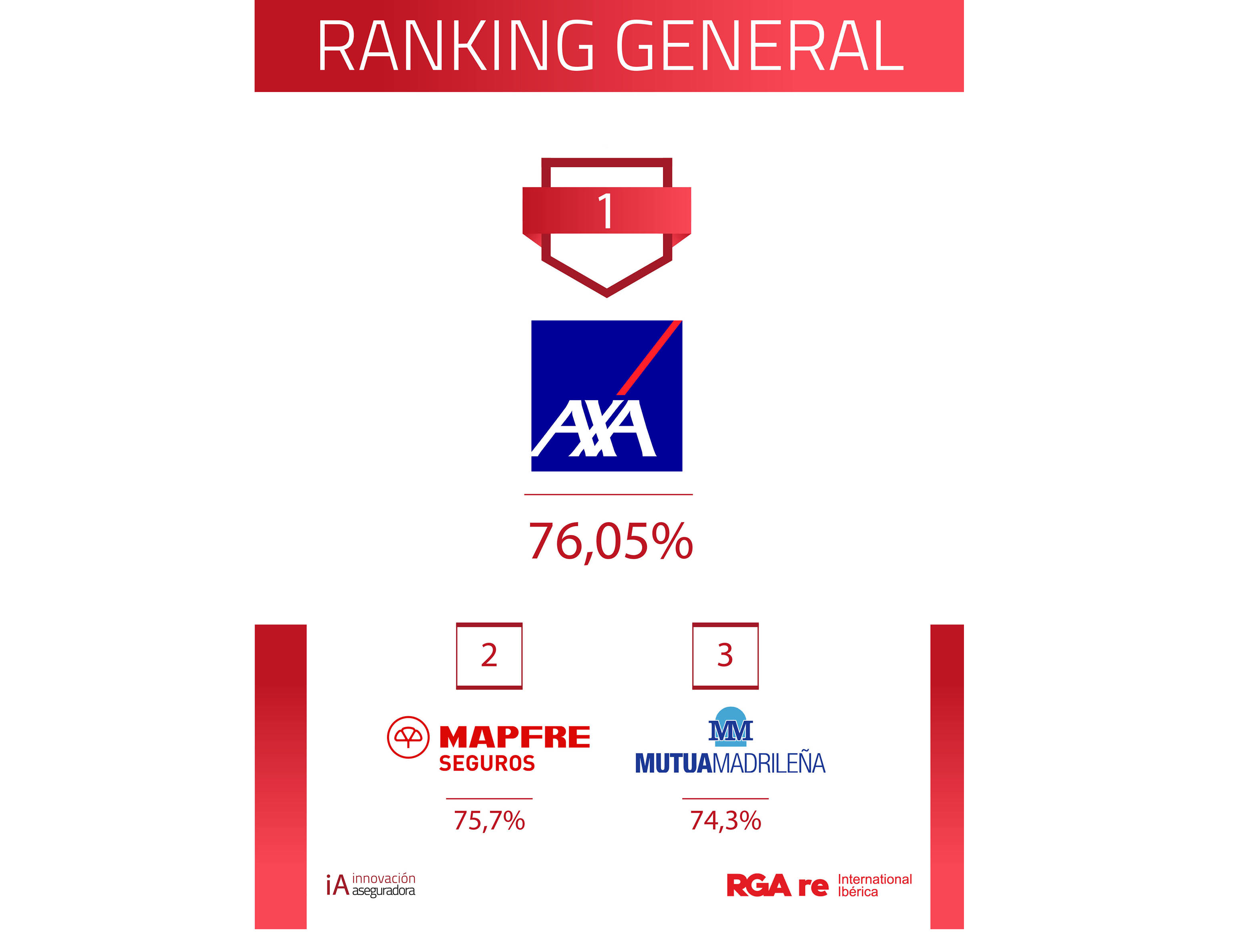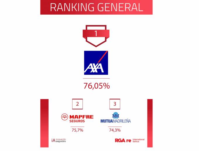 Innovación Aseguradora acaba de publicar su ranking de presencia on-line de entidades aseguradoras, patrocinado por RGA re International Ibérica, correspondiente al primer semestre de 2019. AXA ha conseguido desbancar a ARAG a la quinta posición como la entidad con mejor presencia con una puntuación de 76,05%. Mapfre se alza con el segundo puesto con 75,7 puntos, y el tercer puesto lo ocupa Mutua Madrileña que escala una posición con respecto al ranking anterior, con una puntuación de 74,3 puntos.