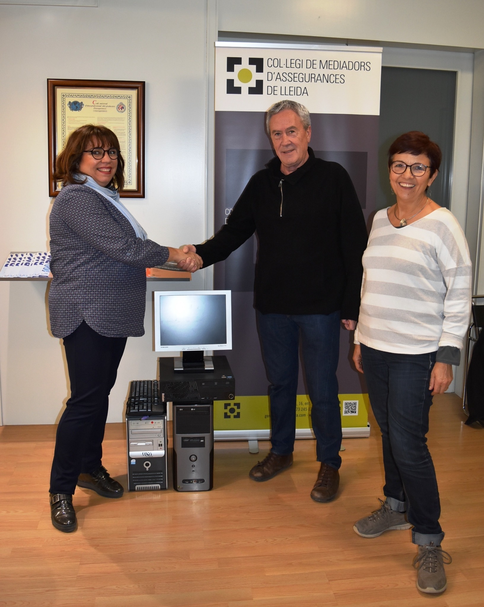 El Colegio de Mediadores de Lleida ha entregado a la asociación Lleida pels refugiats de material informático. Esta asociación trabaja para dar apoyo a personas refugidas tanto en España como en otros países.