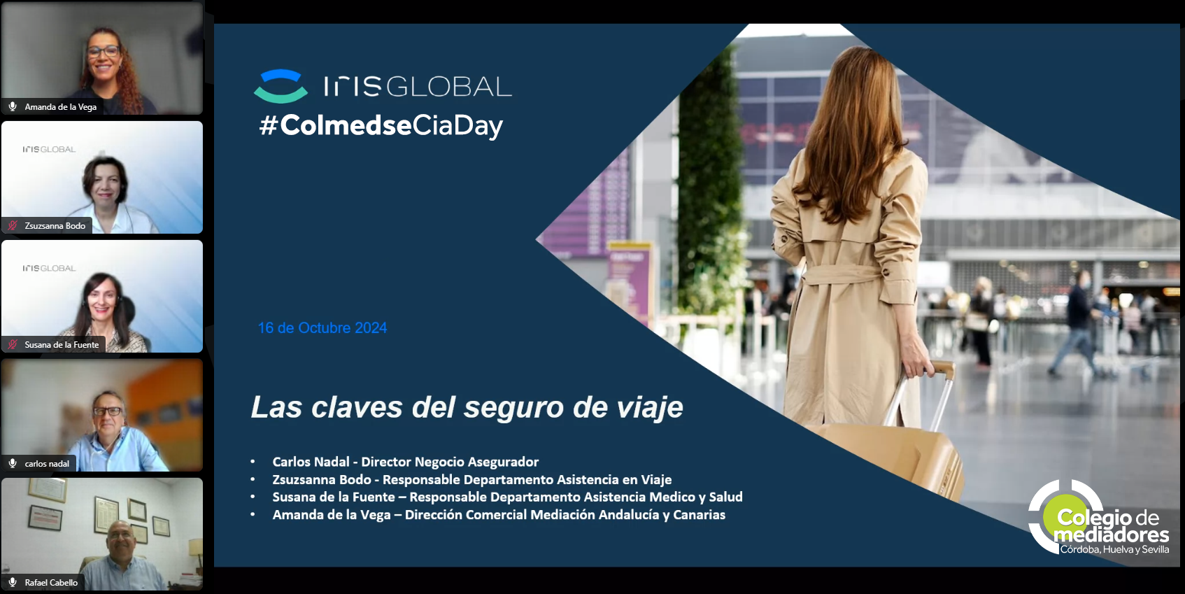 El Colegio de Mediadores de Seguros de Córdoba, Huelva y Sevilla (Colmedse), en colaboración con Iris Global, ha organizado una jornada formativa online en la que la aseguradora ha explicado las soluciones y productos especializados en Asistencia en Viaje y en Salud que ofrece tanto para empresas como para particulares.