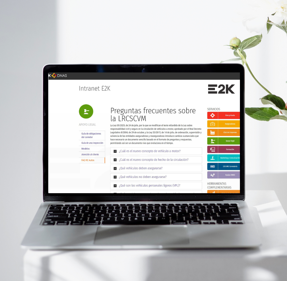 El pasado mes de julio, el Congreso de los Diputados aprobó la reforma definitiva de la Ley sobre responsabilidad civil y seguro en la circulación de vehículos a motor. Ante el impacto que presumiblemente tendrá en miles de pólizas, E2K ha puesto a disposición de todas las corredurías un documento diseñado para resolver de forma inmediata las dudas más frecuentes.