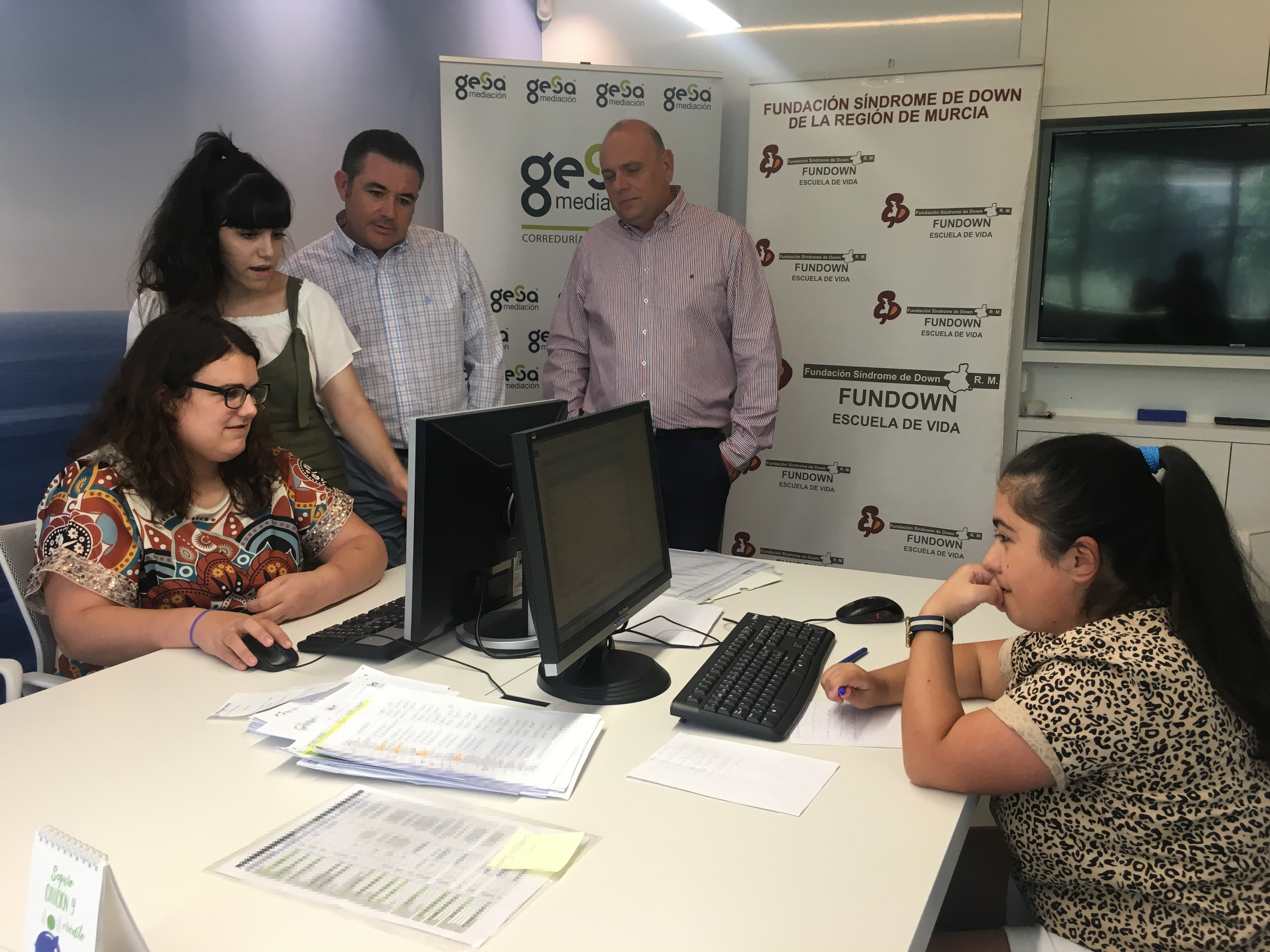 Gesa Mediación impulsa la inserción laboral de dos personas con discapacidad intelectual gracias al convenio firmado por la Fundación de Síndrome de Down de la Región de Murcia (Fundown). Así, dos usuarias - Carmen María y Paloma- de esta asociación están realizando su periodo de formación y adaptación en tareas de auxiliar de administración en las oficinas de la correduría.