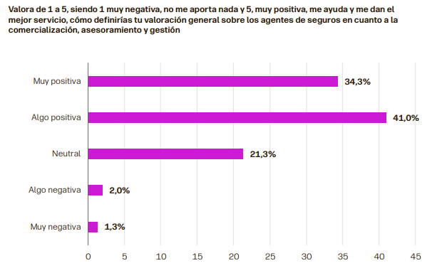 En relación a la percepción que tienen los españoles de los agentes de seguros, Aegon también destaca otro resultado: tan solo un 3,3% tiene una opinión negativa o muy negativa sobre la labor de esta figura.