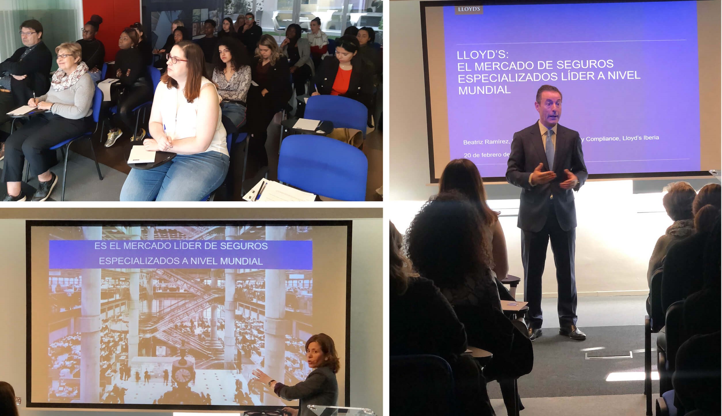 Lloyd's Iberia impartió en sus instalaciones de Madrid una jornada formativa a 20 alumnos del Ipac Bachelor Factory de París. En los programas de licenciatura de la escuela de negocios se contemplan jornadas en empresas con el objetivo de guiar a los estudiantes hacia el empleo mediante el desarrollo del placer de aprender, el deseo de tener éxito, la apertura internacional y el gusto empresarial. Beatriz Ramírez, directora del área Legal y Compliance explicó a fondo el Lloyd's como mercado de seguros especializado, su estructura, perfil de negocio y las razones de su establecimiento en Bruselas.