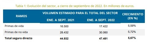 De este total, 30.060 millones de euros corresponden a No Vida, experimentando un crecimiento del 5,72%. De sus principales ramos, Autos sigue siendo el que más aporta a la recaudación con 8.520 millones, aumentando un 3,19%. Detrás se sitúa Salud, que un trimestre más crece a pasos agigantados. En septiembre de 2022, se ha disparado un 7,3%, hasta los 7.915 millones. Entre sus modalidades, Asistencia Sanitaria ha repuntado un 7,64%; Reembolso, un 6,28%; mientras que Subsidio ha caído un 1,19%.