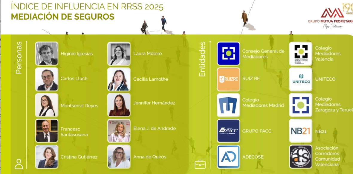 Grupo Mutua Propietarios ha dado a conocer las 10 cuentas personales e instituciones relacionadas con la mediación de seguros más influyentes en 2025. En esta VIII edición del índice se añadido LinkedIn al estudio anual. "Al observar que la conversación de este sector tan estratégico para Grupo Mutua Propietarios se enfocaba cada vez en más en LinkedIn, este año hemos incorporado esta red social al estudio para medir de forma más certera el nivel de influencia de los perfiles, lo que nos ha permitido encontrar nuevos e interesantes focos de conversación de cara a enriquecer el ranking", comenta Natalia Fernández, responsable de Marketing Estratégico & de Marcas del Grupo Mutua Propietarios.