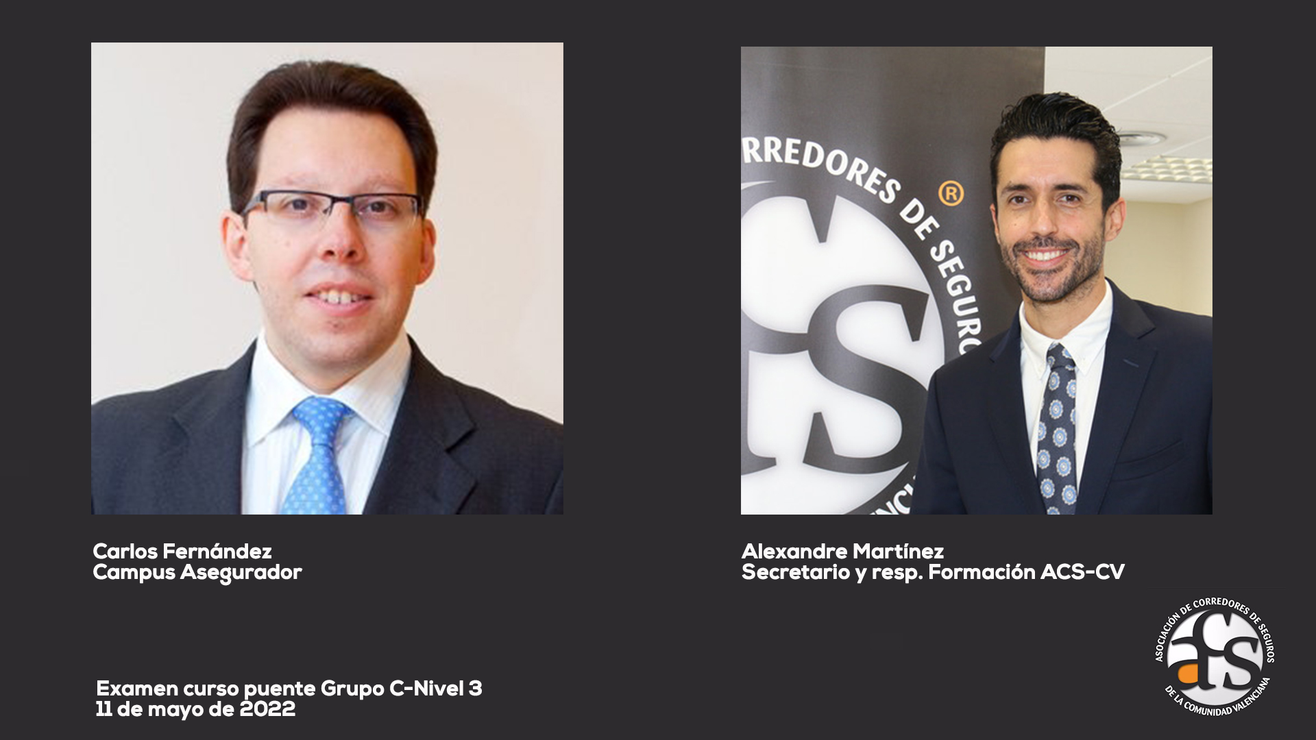 La Asociación de Corredores de Seguros de la Comunidad Valenciana (ACS-CV) ha realizado el examen del Curso Nivel 3, dando respuesta así a la nueva normativa que dice que los empleados o colaboradores externos que disponen de certificado profesional de Grupo C deben obtener la titulación Nivel 3 para seguir realizando su trabajo.