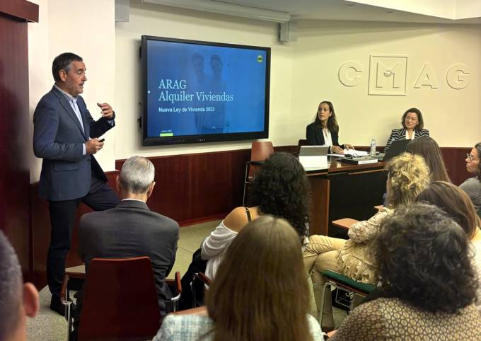 Párraga explicó los cambios que ha supuesto la Ley de Vivienda, cómo afecta a los grandes tenedores y a los arrendatarios en situación de vulnerabilidad y detalló qué es una zona tensionada y cómo afecta a un contrato de alquiler y a los plazos de un desahucio. Por su parte, Juan Dueñas expuso las herramientas que ARAG ofrece para proteger el alquiler y a los arrendadores.