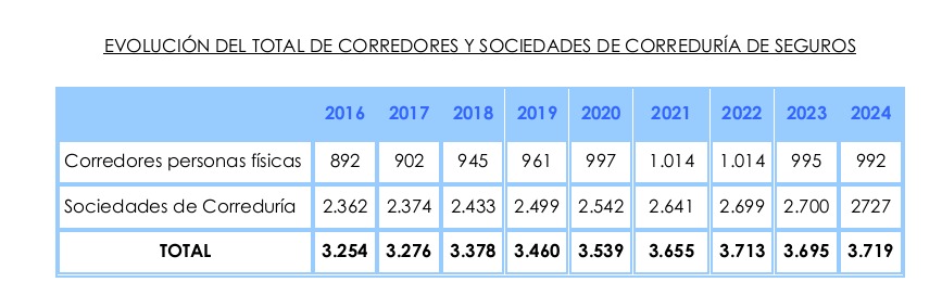 Por su parte, las sociedades de correduría, las personas jurídicas, se han incrementado año tras año desde 2016 pasando desde las 2.362 a las actuales 2.727.