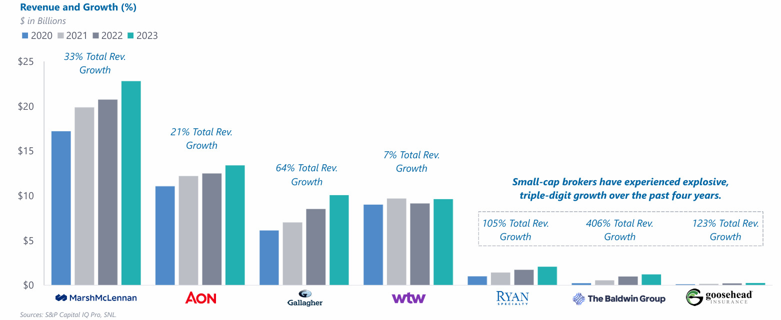 Dentro de este proceso de transformación que está atravesando el mundo de los brokers a nivel mundial cobra especial importancia la innovación digital, la consolidación del mercado y un cambio hacia soluciones más personalizadas, añade la firma. En este sentido, Houlihan Lokey apuesta por que este mercado alcance un volumen de primas consolidadas de 130.000 millones para 2027. Esta cantidad sería un crecimiento del 23,8% respecto al cierre de 2023 (105.000 millones) y muy por encima de los cerca de 99.000 con los que acabó 2022.
