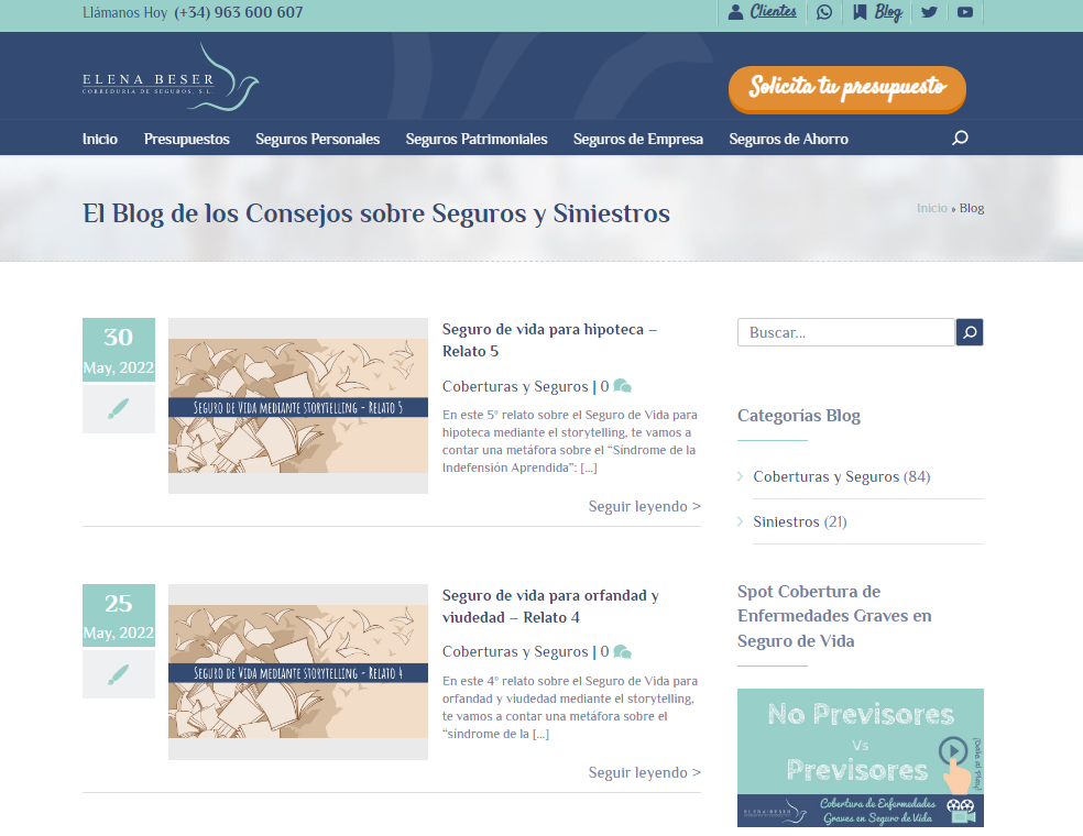 El blog de consejos sobre seguros de la correduría Elena Beser alcanza los 3 millones de visitas
