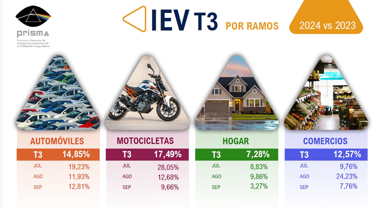 El Índice de Evolución de Ventas (IEV) correspondiente al tercer trimestre de 2024, elaborado por Prisma, revela un crecimiento del 13,75% en la nueva producción de primas gestionadas por el canal de corredores respecto al mismo periodo del año anterior.