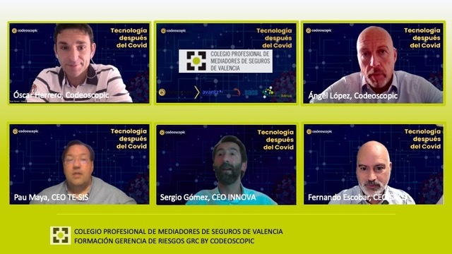 El Colegio de Mediadores de Valencia ha celebrado una jornada sobre el entorno tecnología de la mano de Óscar Herrero, responsable de Protocolo y Relaciones Institucionales en el Grupo Codeoscopic. La webinar versó sobre vender más y mejor, valor, eficacia y rentabilidad. Codeoscopic ha realizado este tipo de formación en 16 colegios.