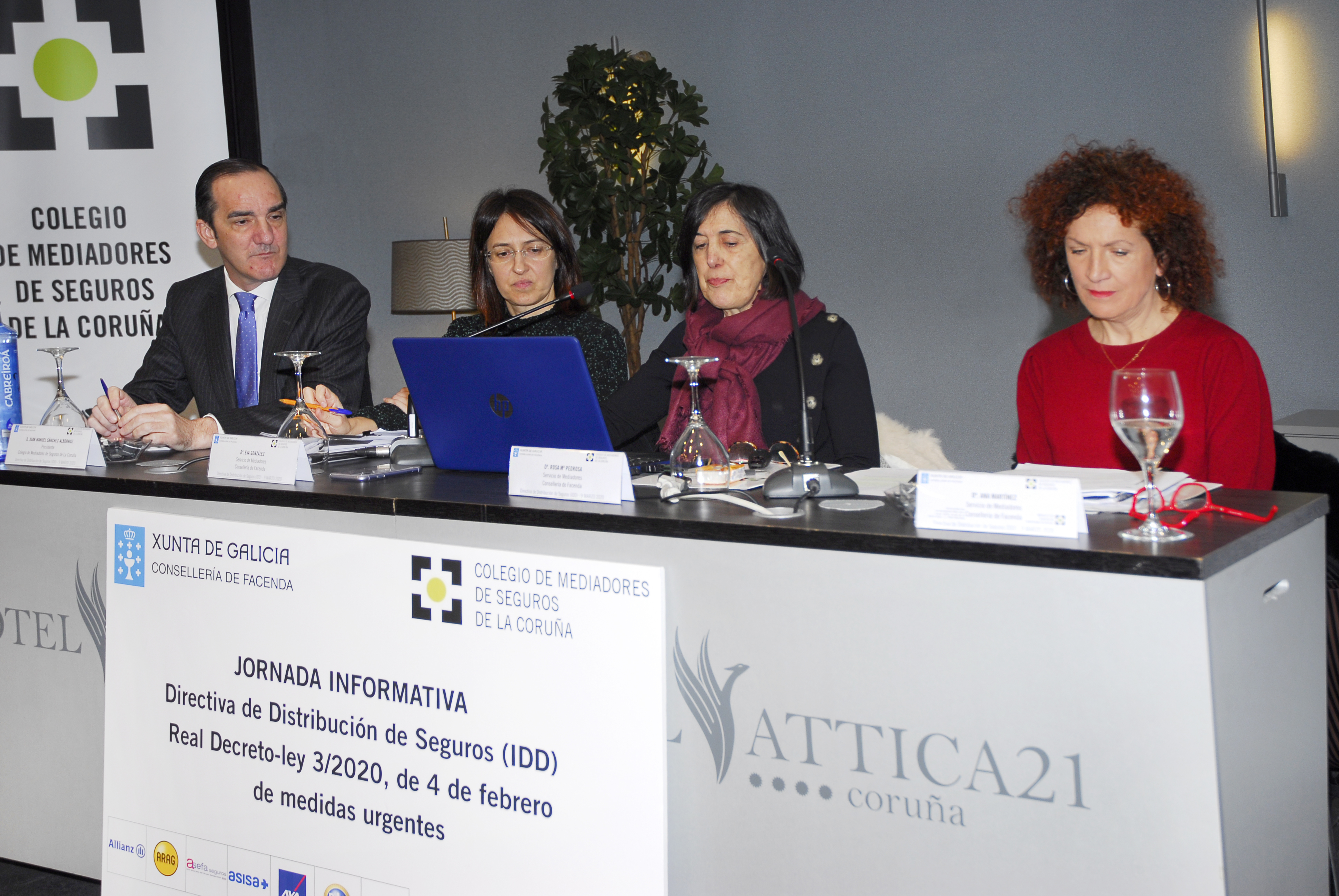 En la jornada participaron la consellería de Facenda, Rosa María Pedrosa, y las responsables del Servicio de Supervisión e Inspección de entidades y mediadores de seguros, Ana Martínez y Eva González.