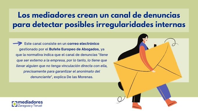 Los Colegios de Mediadores de Seguros de Zaragoza y Teruel han puesto a disposición de sus colegiados un nuevo canal de denuncias para detectar posibles irregularidades internas. Con esta acción se cumple lo establecido en el Real Decreto-Ley 3/2020, que obliga a la creación de herramientas que permita denunciar posibles delitos que sucedan en las corredurías de seguros y, de este modo, prevenirlos.