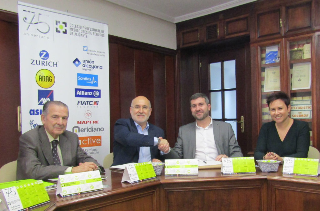 La mutua Asepeyo y el Colegio de Mediadores de Alicante han suscrito un convenio de colaboración encaminado a mejorar la orientación, formación y el conocimiento de la normativa y las actividades en materia de afiliación, cotización, acciones protectoras, prestaciones y prevención de riesgos laborales. La mutua se suma a la oferta con la que cuenta el colegio en materia de formación y ofrecerá charlas, cursos, conferencias y jornadas.