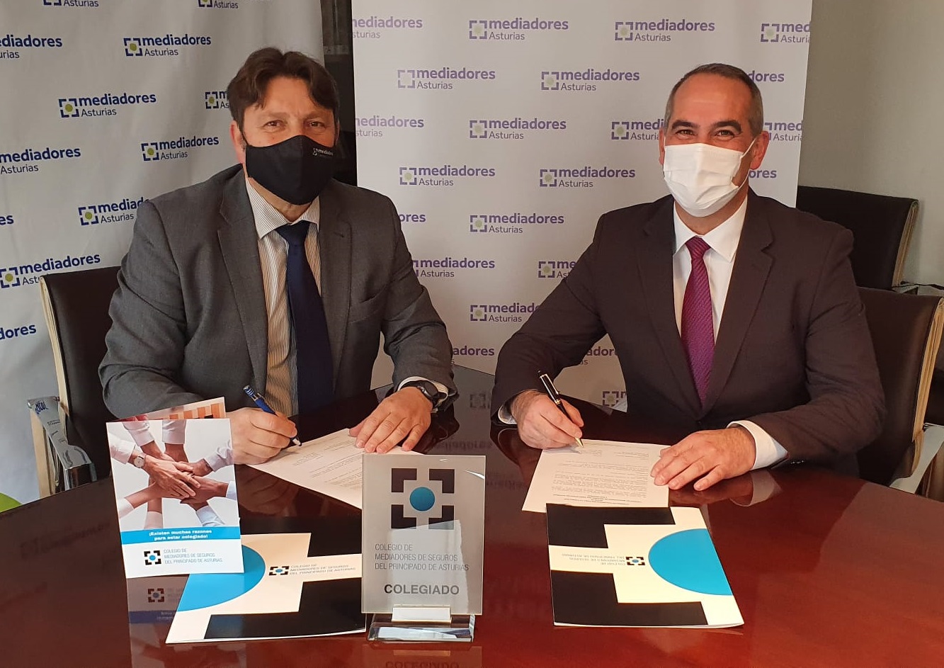 El presidente del Colegio de Asturias, Reinerio Sarasúa, y el delegado de Zona en Asturias, León, Burgos y Palencia de DAS Seguros, Fabián Fernández, han formalizado la renovación del acuerdo de colaboración entre ambas entidades para 2022 en un encuentro celebrado en la sede colegial, con el objetivo de potenciar nuevas actividades en el ámbito de la formación.