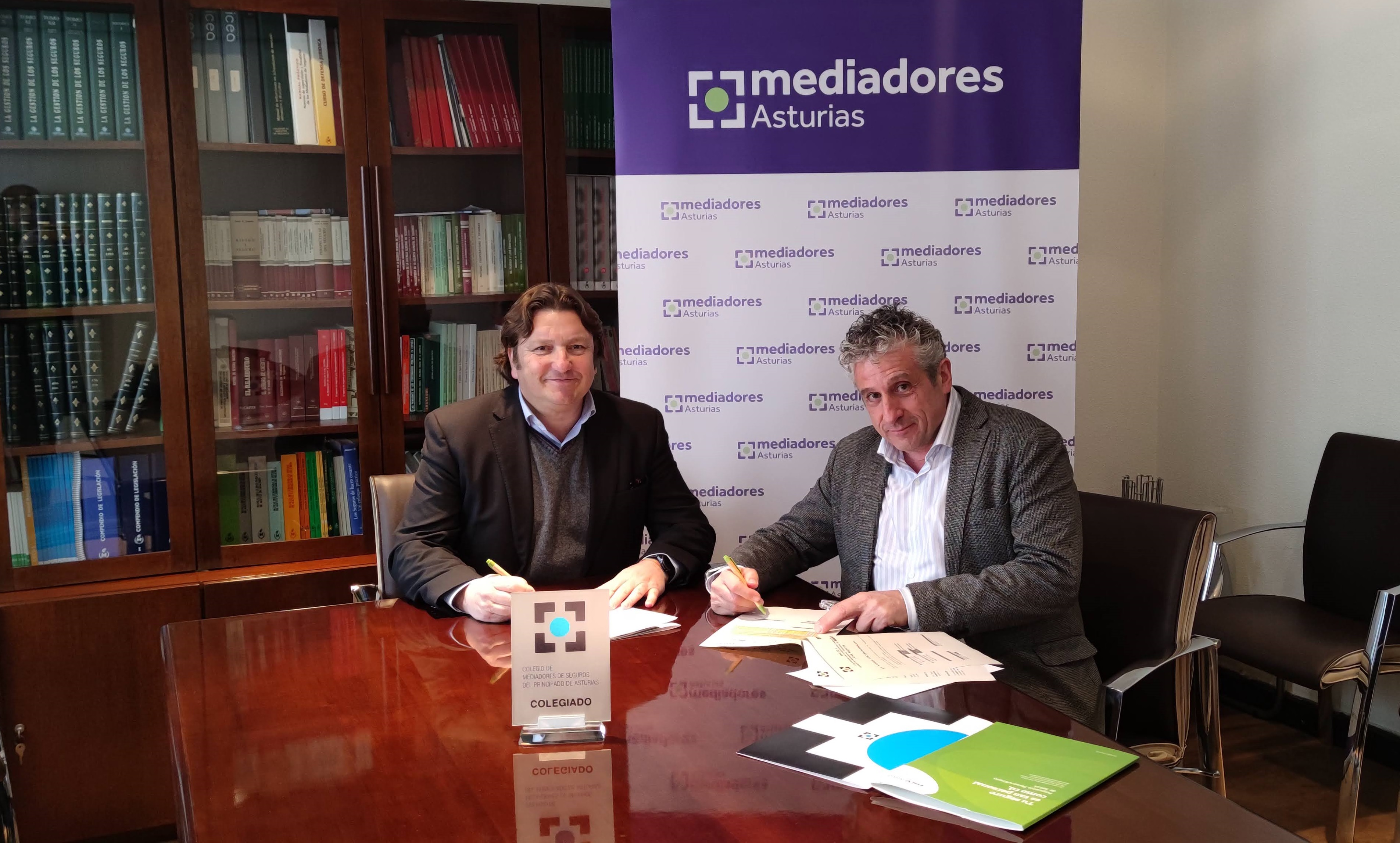 El Colegio de Mediadores de Asturias y DKV Seguros han renovado el acuerdo de colaboración que les une que en esta ocasión tendrá una vocación formativa y así "impulsar la excelencia en el desarrollo profesional de la mediación". El presidente del colegio, Reinerio Sarasúa, y el director provincial de DKV en Asturias y Cantabria, José María Burunat, ratificaron este acuerdo acompañados del vicepresidente de la institución, Ignacio Friera, y la consultora de la red de corredores en DKV, Julia Díaz.
