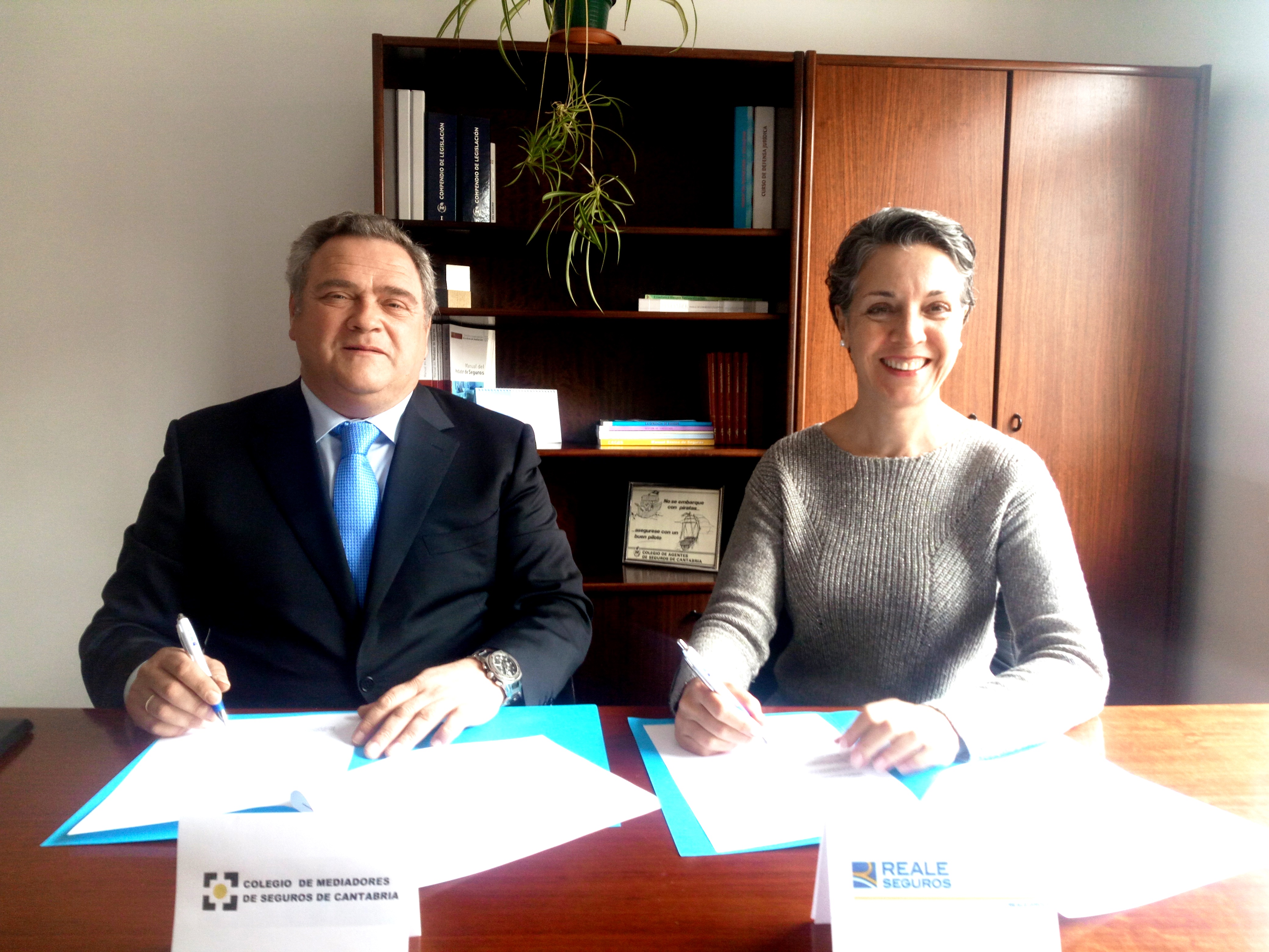 El presidente del Colegio de Mediadores de Seguros de Cantabria, Antonio Rivas, y la directora de la sucursal de Cantabria de Reale, Mercedes Palomero Martín, se han reunido para renovar el acuerdo de colaboración entre ambas entidades.