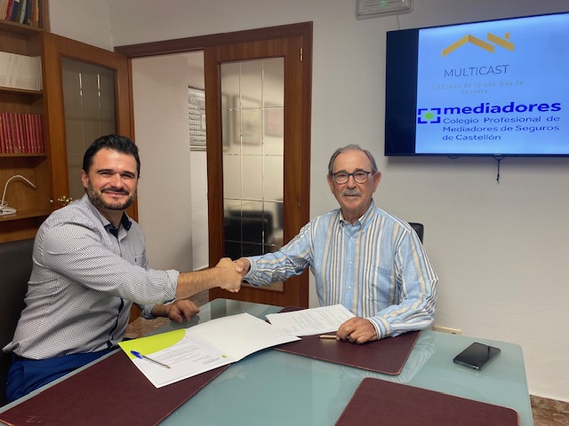 El Colegio de Mediadores de Seguros de Castellón ha firmado un protocolo de colaboración con MultiCast Asistencia, especializada en siniestros de hogar y negocio. Tras rubricar el acuerdo, Antonio Fabregat, presidente de la institución colegial, ha dado la bienvenida a MultiCast Asistencia como nueva empresa colaboradora: "Estamos seguros de que esta colaboración será muy beneficiosa para ambas partes".