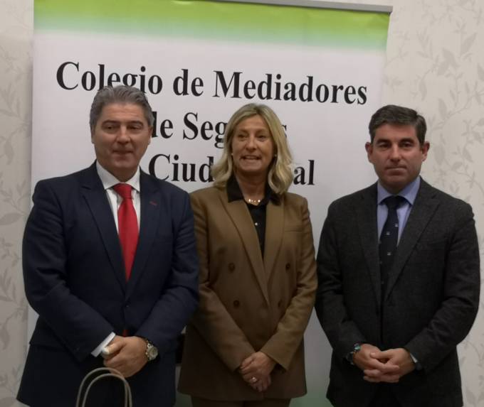 El presidente del Consejo Regional de Mediadores de Seguros de Castilla-La Mancha, José Enrique García Mérida, junto a la presidenta del Consejo General, Elena Jiménez de Andrade, y el presidente del Colegio de Ciudad Real, Ramón Sampedro, han inaugurado el X Encuentro de Mediadores de Seguros de Ciudad Real organizado por el colegio manchego.