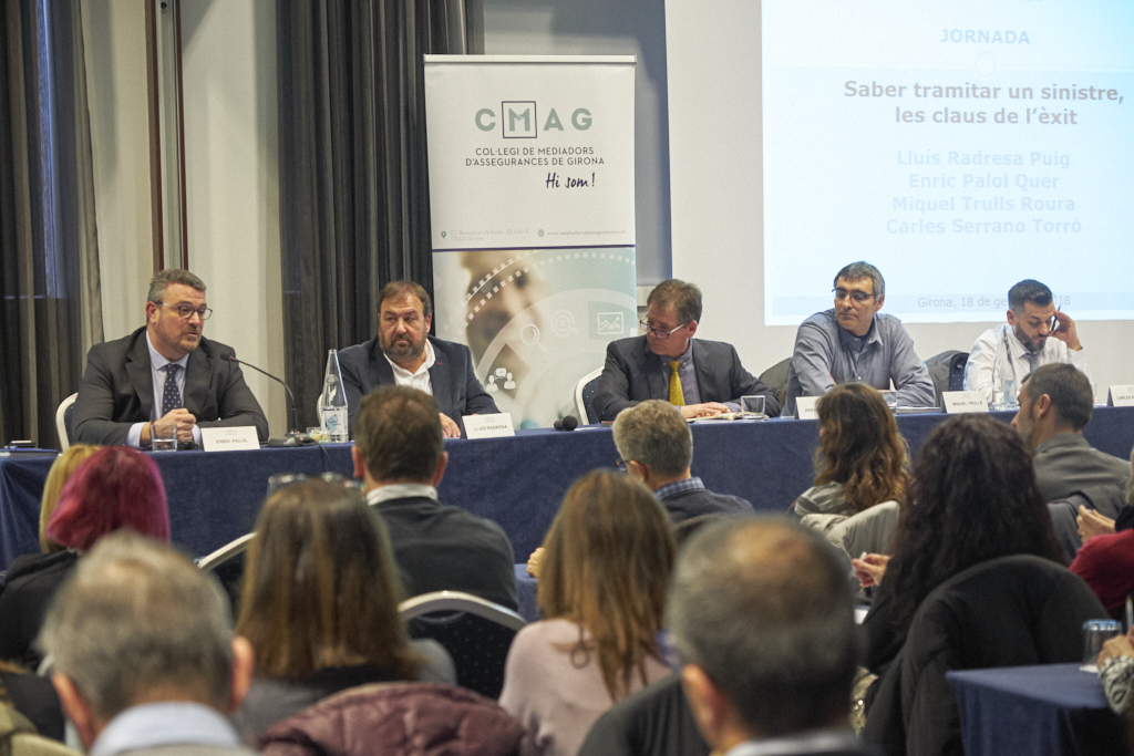 El Colegio de Girona ha celebrado la jornada 'Saber tramitar un siniestro, las claves del éxito', a la que han asistido más de un centenar de personas. Han participado dos mediadores colegiados, Lluís Radresa y Enric Palol, quienes han analizado cómo tramitar correctamente los diferentes tipos de siniestros, qué gestiones puede avanzar el mediador y cuáles el cliente, qué consejos se deben dar o qué documentación se precisa.