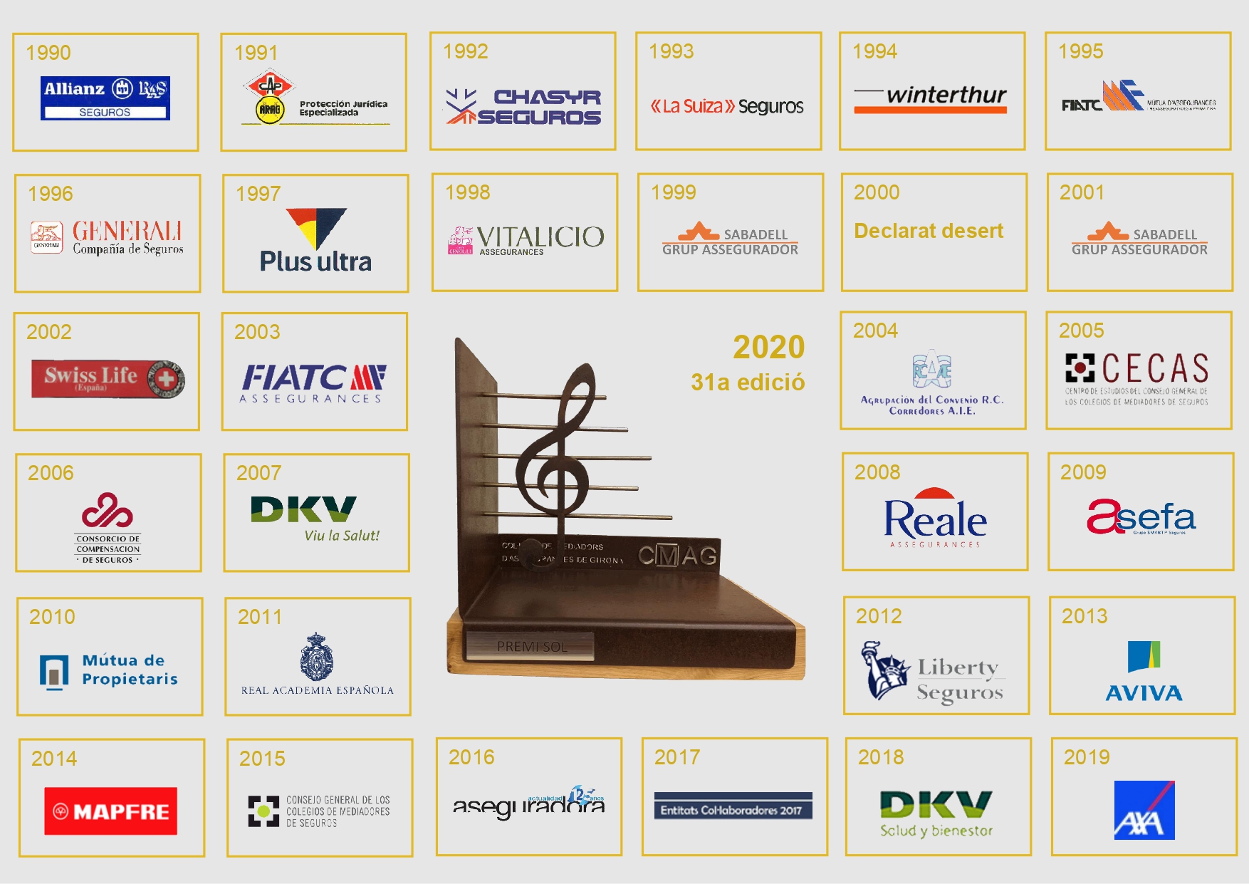 El Premi Sol que otorga el Colegio de Girona y que distingue a aquella entidad, organismo o institución de ámbito nacional o internacional que se haya destacado en el fortalecimiento y defensa del mediador de seguros y en sus relaciones con el colegio, celebra su XXXI edición.