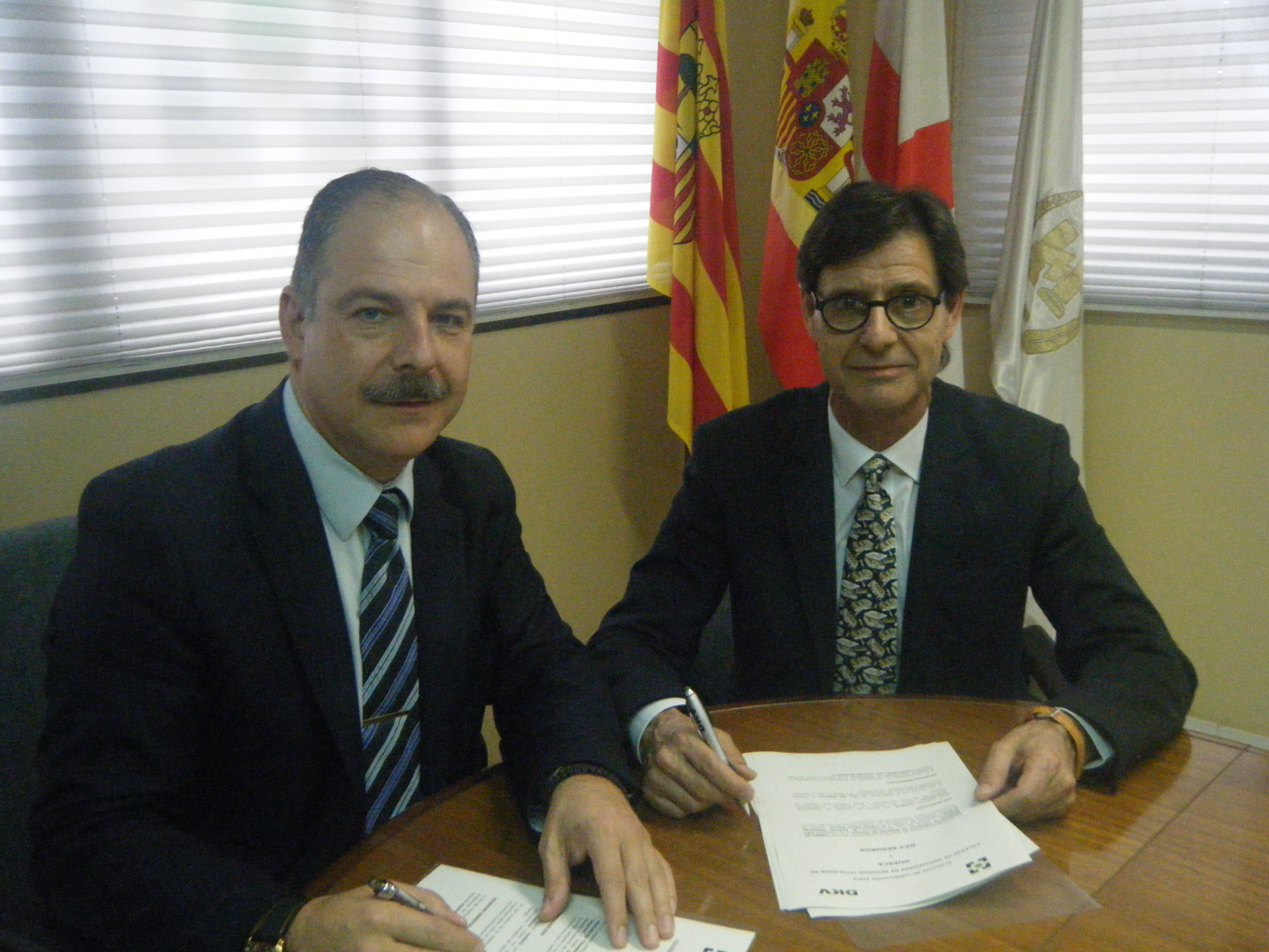 El Colegio de Mediadores de Huesca y DKV firmaron, el 18 de mayo, la renovación del protocolo de colaboración a través de sus representantes, Carlos Marín, director de sucursal de DKV Seguros, y Antonio Mascaray, presidente del colegio.