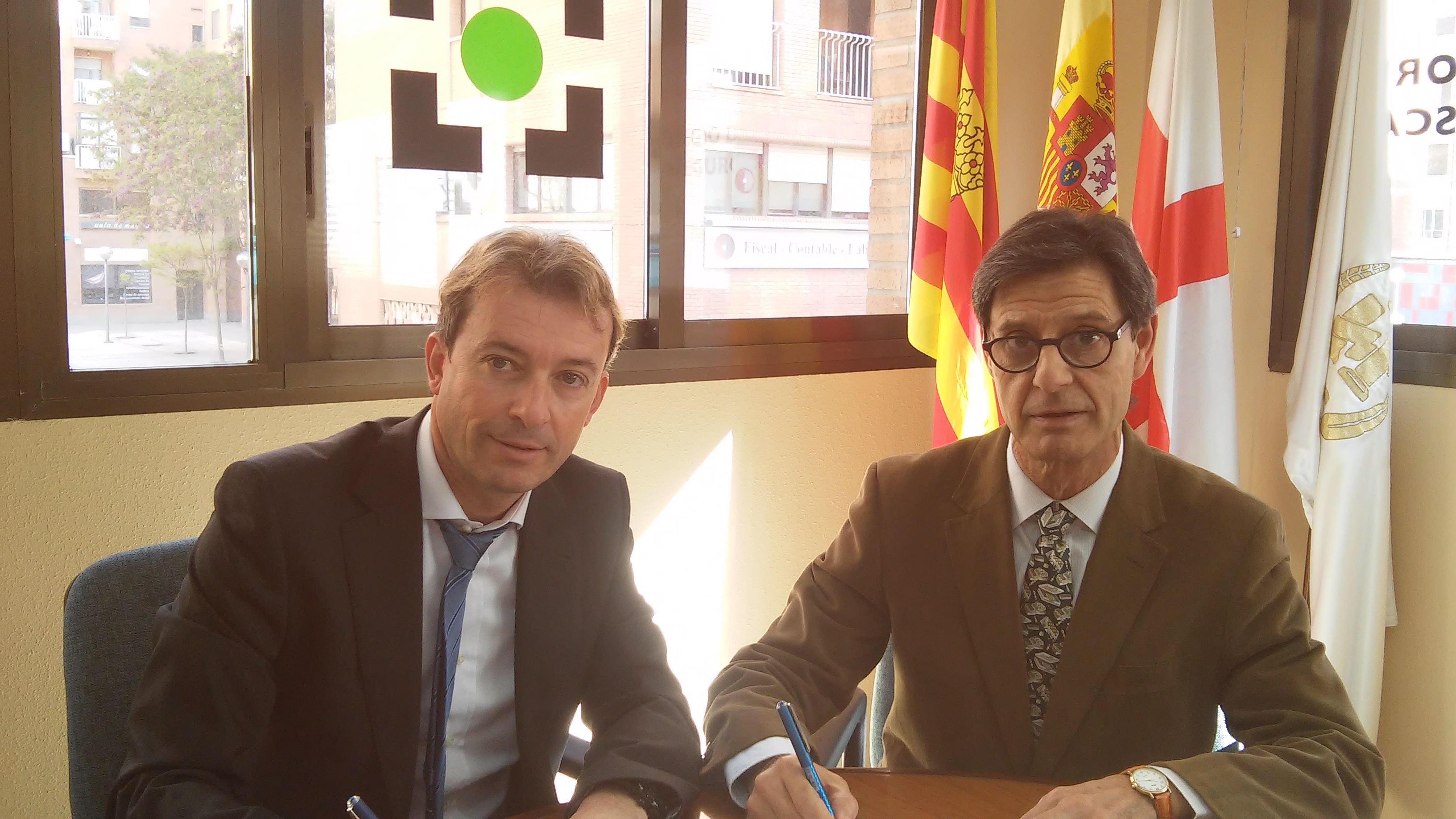 El Colegio de Mediadores de Huesca y Reale Seguros han renovado el protocolo de colaboración entre ambas entidades con la firma de Francisco Javier González, director de la sucursal de Huesca de la aseguradora y Antonio Mascaray, presidente del colegio.