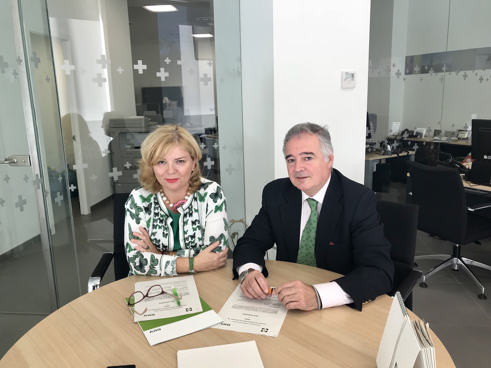 El colegio de Mediadores de Jaén ha renovado su acuerdo de colaboración con DKV Seguros. El convenio lo han firmado Teresa Viedma, directora de sucursal de DKV, y Javier García, presidente del colegio.