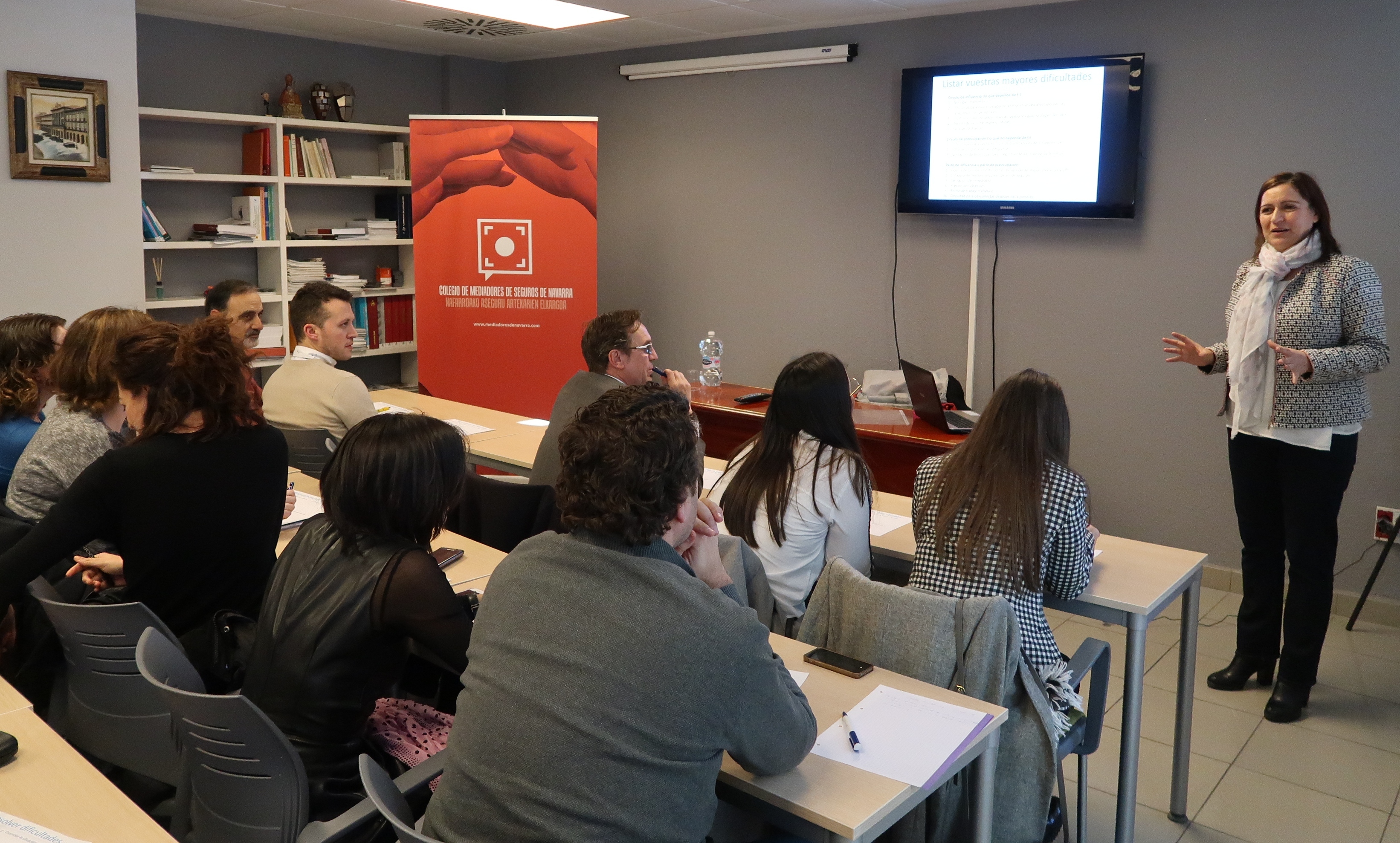 El Colegio de Navarra organizó la segunda jornada de coaching con la formadora Ana Apesteguía, que giró en torno a cómo gestionar de forma positiva los problemas que surgen en el día a día de un mediador de seguros.