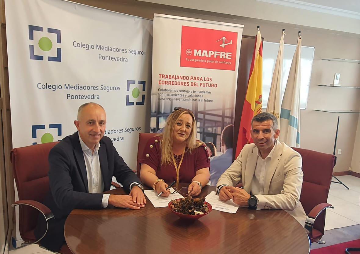 El Colegio de Pontevedra y Mapfre han firmado un acuerdo de colaboración para "fortalecer los lazos entre ambas instituciones y fomentar el desarrollo profesional del sector asegurador en la provincia de Pontevedra". Las líneas de actuación se centrarán en el apoyo institucional y formativo por parte de Mapfre, el fomento de la mediación profesional y el desarrollo de actividades conjuntas. Por parte del Colegio firmó el acuerdo su presidenta, Mª Jesús Carballa, y por la compañía Francisco Cenador, director territorial, y Jorge López, director Mapfre-Oficina Corredores.