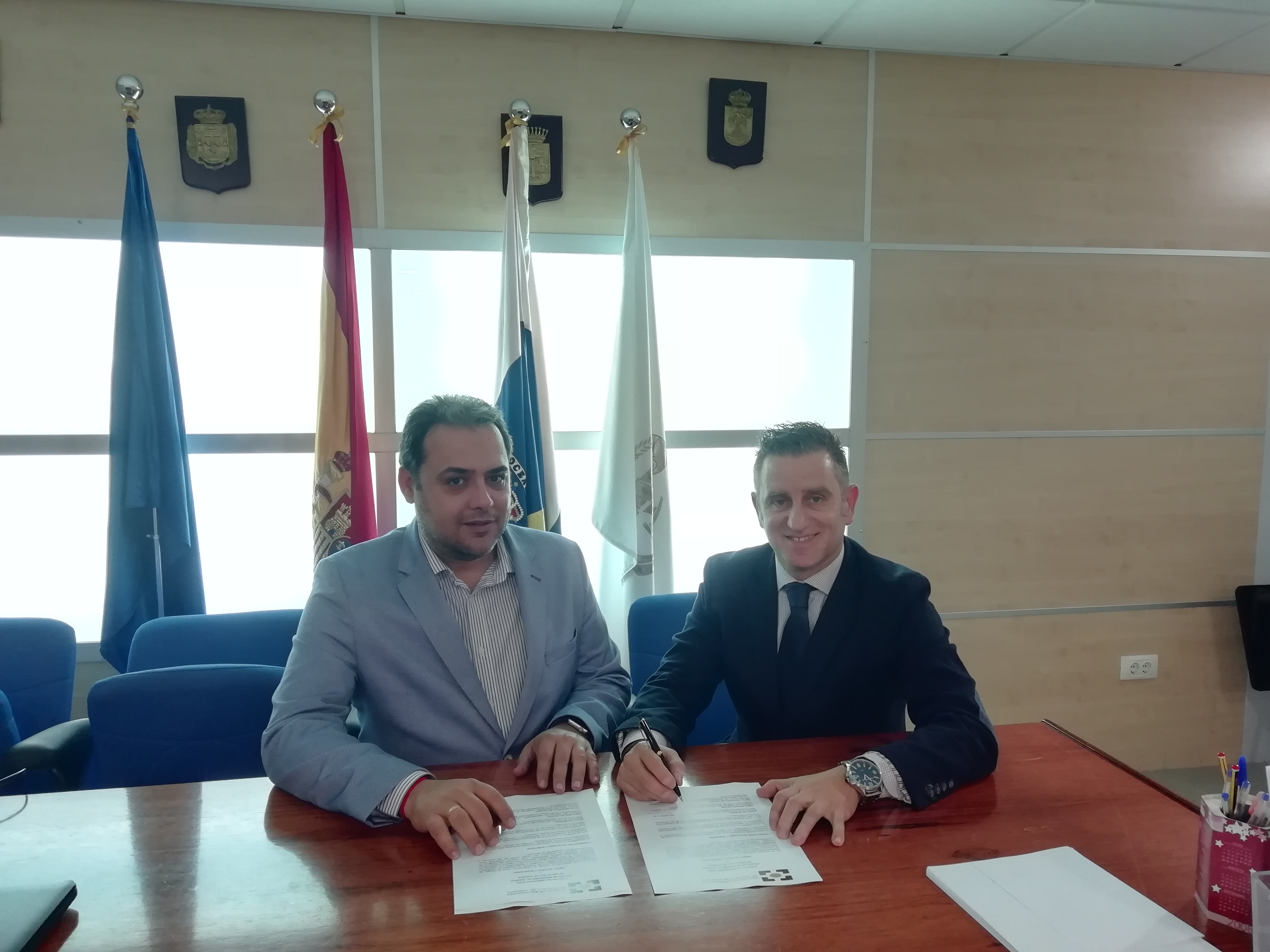 Javier Arquillo, representante del Colegio, felicitó a Eduardo Martín, director comercial de Zona Canarias de Liberty, por su reciente incorporación a la compañía. Agradeció además el apoyo que sigue mostrando la aseguradora por la oferta formativa que presta el Colegio reforzando de ese modo la profesionalización de los mediadores dentro del sector seguros.