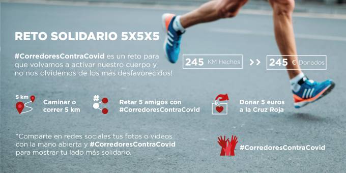 En esta ocasión, y aprovechando que el desconfinamiento permite salir cada vez más a la calle, la mediación ha lanzado el reto #CorredoresContraCovid, consistente en animar a la gente a caminar o correr 5 kilómetros, donar 5 euros (a través de la web corredorescontracovid.com) y nominar a 5 personas en redes sociales para viralizar el reto y llegar así a todo el mundo.