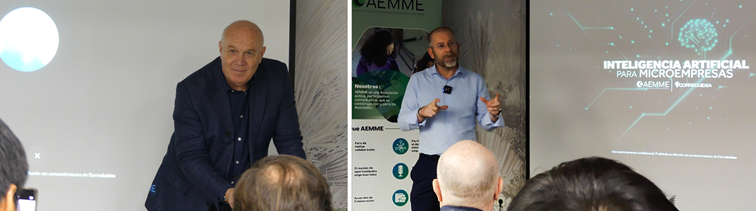 Aemme, la Asociación Española Multisectorial de Microempresas, acogió la jornada 'IA para Microempresas', impartida por Correduidea. La sesión incluyó la entrega de un asistente personalizado para la propia asociación, diseñado por Correduidea, para facilitar a los asistentes el uso de esta herramienta en cinco grandes áreas para ser más rentables, digitales y sostenibles: análisis estratégico, transformación digital, : digitalización de marketing y ventas, finanzas básicas y legal y fiscal.