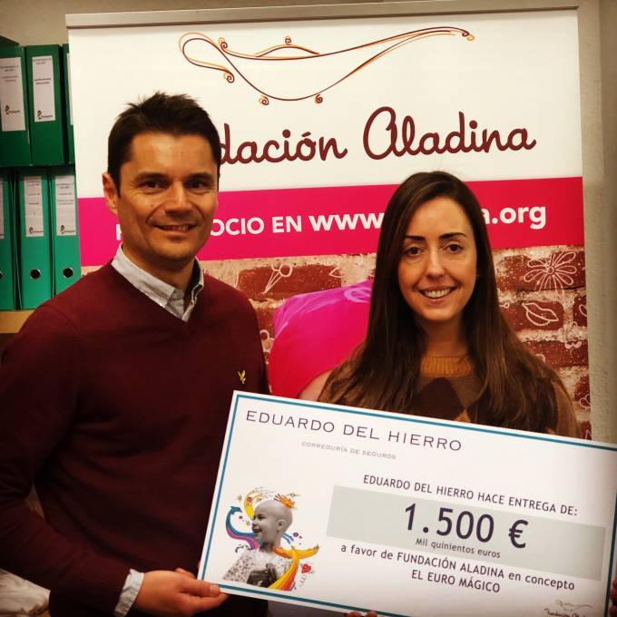 La correduría vallisoletana Eduardo del Hierro ha entregado a Fundación Aladina los 1.500 euros recaudados a través de su campaña solidaria 'El Euro Mágico'. La iniciativa consiste en donar a la ONG 1 euro de cada póliza firmada en la correduría a lo largo del año.