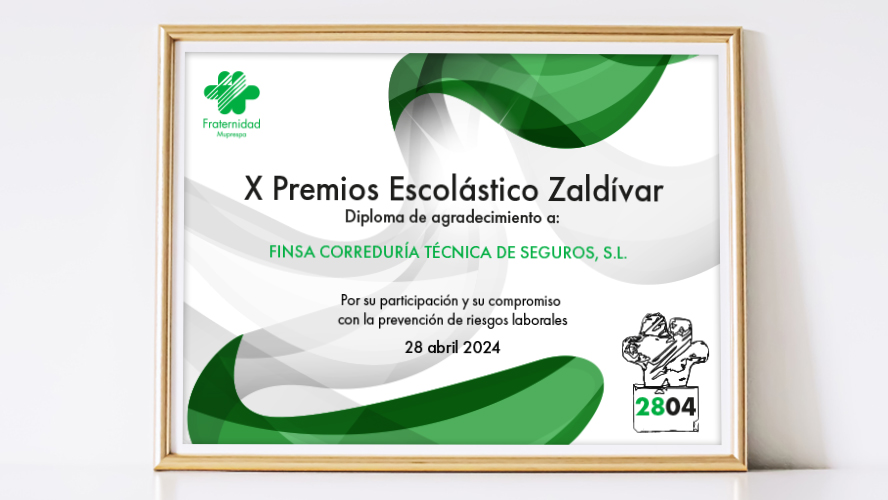 La Fraternidad Muprespa ha entregado un reconocimiento a la correduría Finsa dentro de los 'X Premios Escolástico Zaldívar'. Apunta la distribuidora de seguros que este galardón "destaca nuestro firme compromiso en la promoción de la prevención de riesgos laborales". Manifiesta que "es un honor para nosotros recibir este premio, ya que refleja nuestro continuo compromiso con la creación de una cultura de seguridad y bienestar en el ámbito laboral".