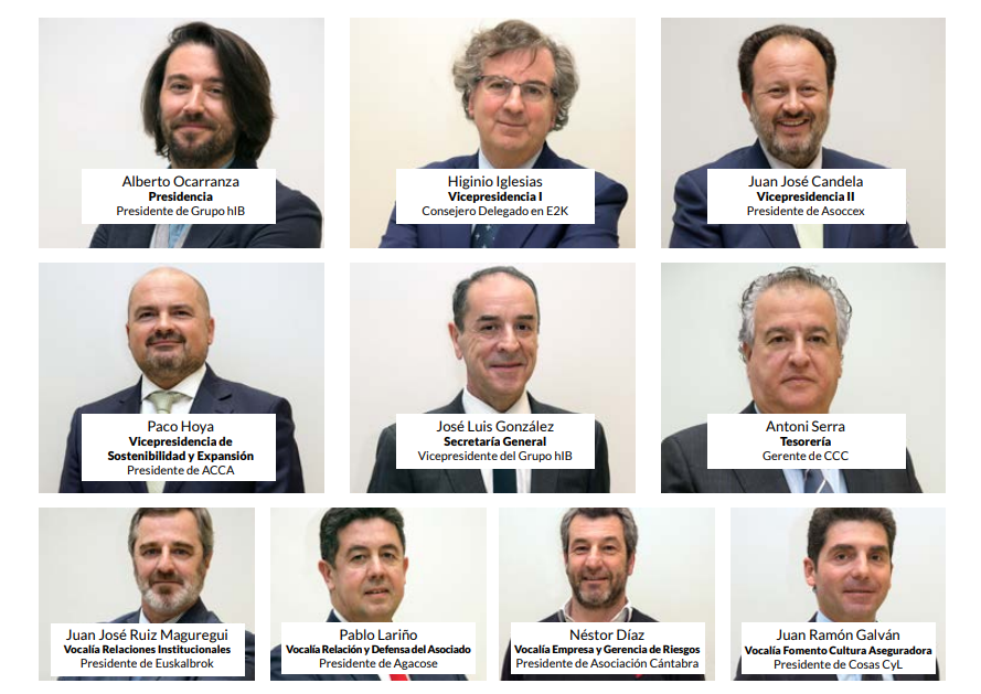 Estará liderada por él, que recordamos que es presidente de Grupo hIB y CEO de Cursoris Correduría de Seguros, y habrá 3 vicepresidencias: Higinio Iglesias, consejero delegado de E2K, que será vicepresidente I; Juan José Candela, presidente de Asoccex, que será vicepresidente II; y Paco Hoya, presidente de ACCA, que será vicepresidente de Sostenibilidad y Expansión. José Luis González, vicepresidente del Grupo hIB, asumirá la Secretaría General; y Antoni Serra, gerente de CCC, la Tesorería. Por último, habrá 4 vocales: Juan José Ruiz Maguregui, presidente de Euskalbrok, que ocupará la Vocalía de Relaciones Institucionales; Pablo Lariño, presidente de Agacose, la de Relación y Defensa del Asociado; Néstor Díaz, presidente de Asociación Cántabra, la de Empresa y Gerencia de Riesgos; y Juan Ramón Galván, presidente de Cosas CyL, la de Fomento Cultura Aseguradora.