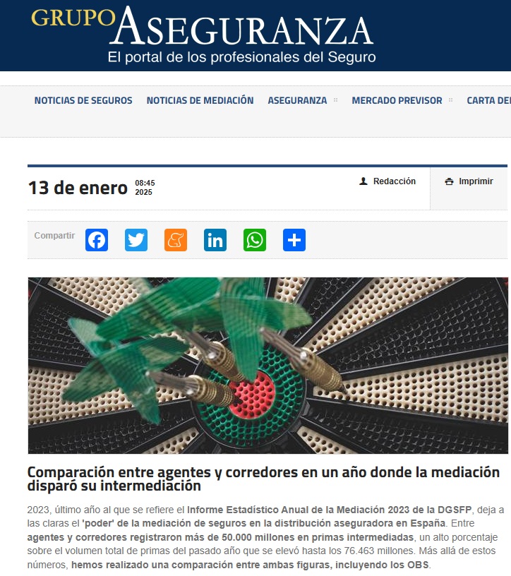 Grupo Aseguranza apuesta y apoya a la mediación de seguros. El portal de los profesionales del seguro dedica, en este sentido, una sección específica a las noticias relativas a corredores, agentes y distribución en general cuyas noticias tienen una gran acogida por los lectores.