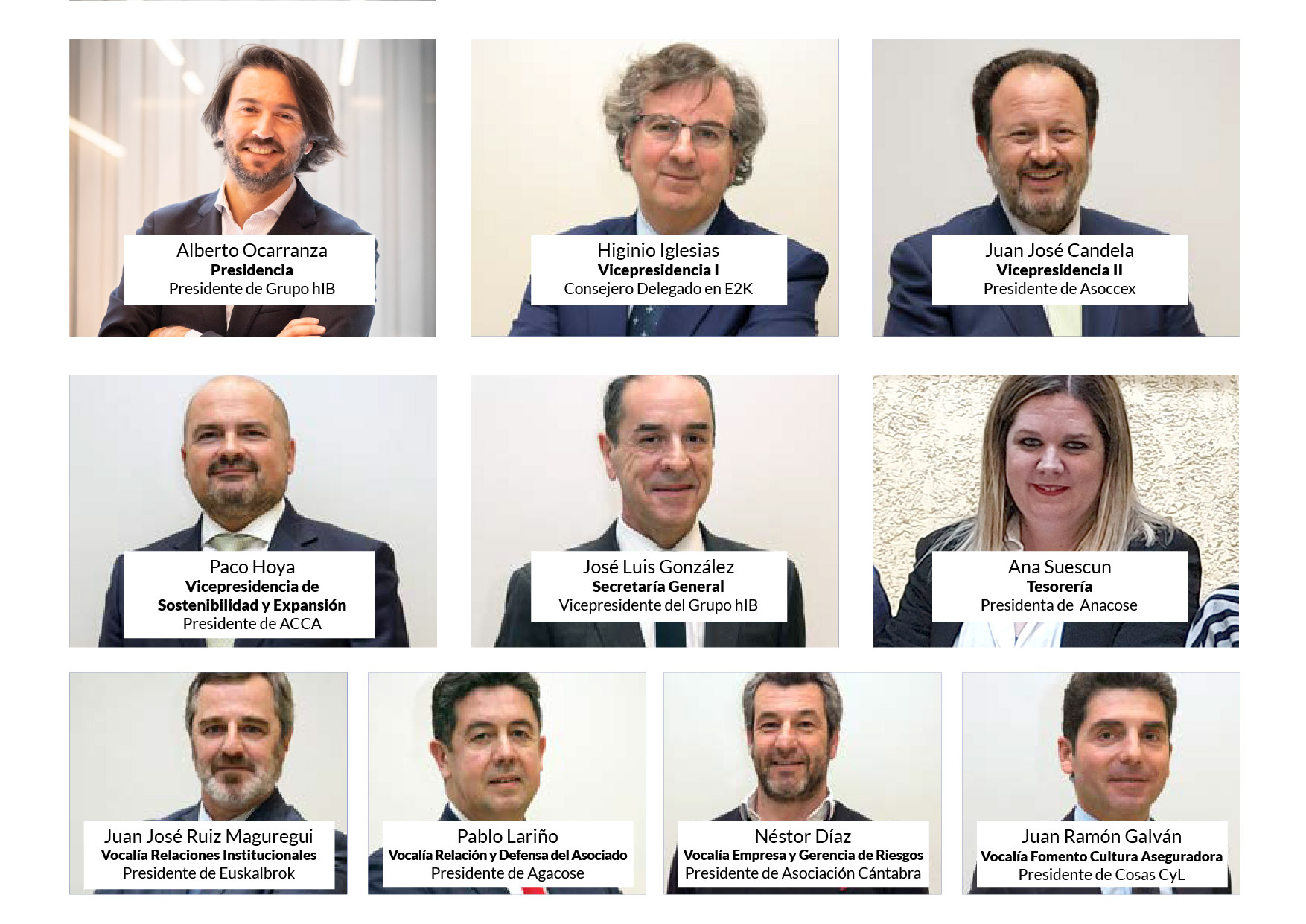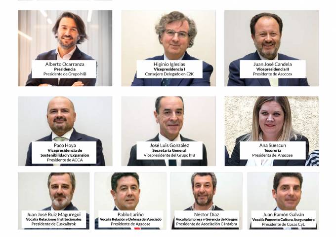 Y las vocalías son las siguientes: Juan José Ruiz Maguregui (presidente de Euskalbrok), de Relaciones Institucionales; Pablo Lariño (presidente de Agacose), de Relación y Defensa del Asociado; Néstor Díaz (presidente de Asociación Cántabra), de Empresa y Gerencia de Riesgos; y Juan Ramón Galván (presidente de Cosas CyL), de Fomento de la Cultura Aseguradora.