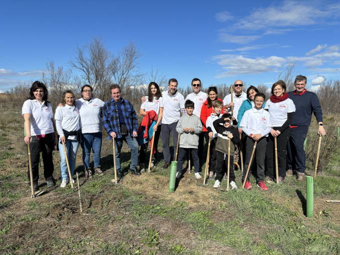 Voluntarios de la Fundación Aon España ha plantado 250 árboles y arbustos autóctonos de 1-2 años de edad en una zona en riesgo de desertificación de los Galachos de La Alfranca, declarado Reserva Natural en 1991, en Zaragoza.