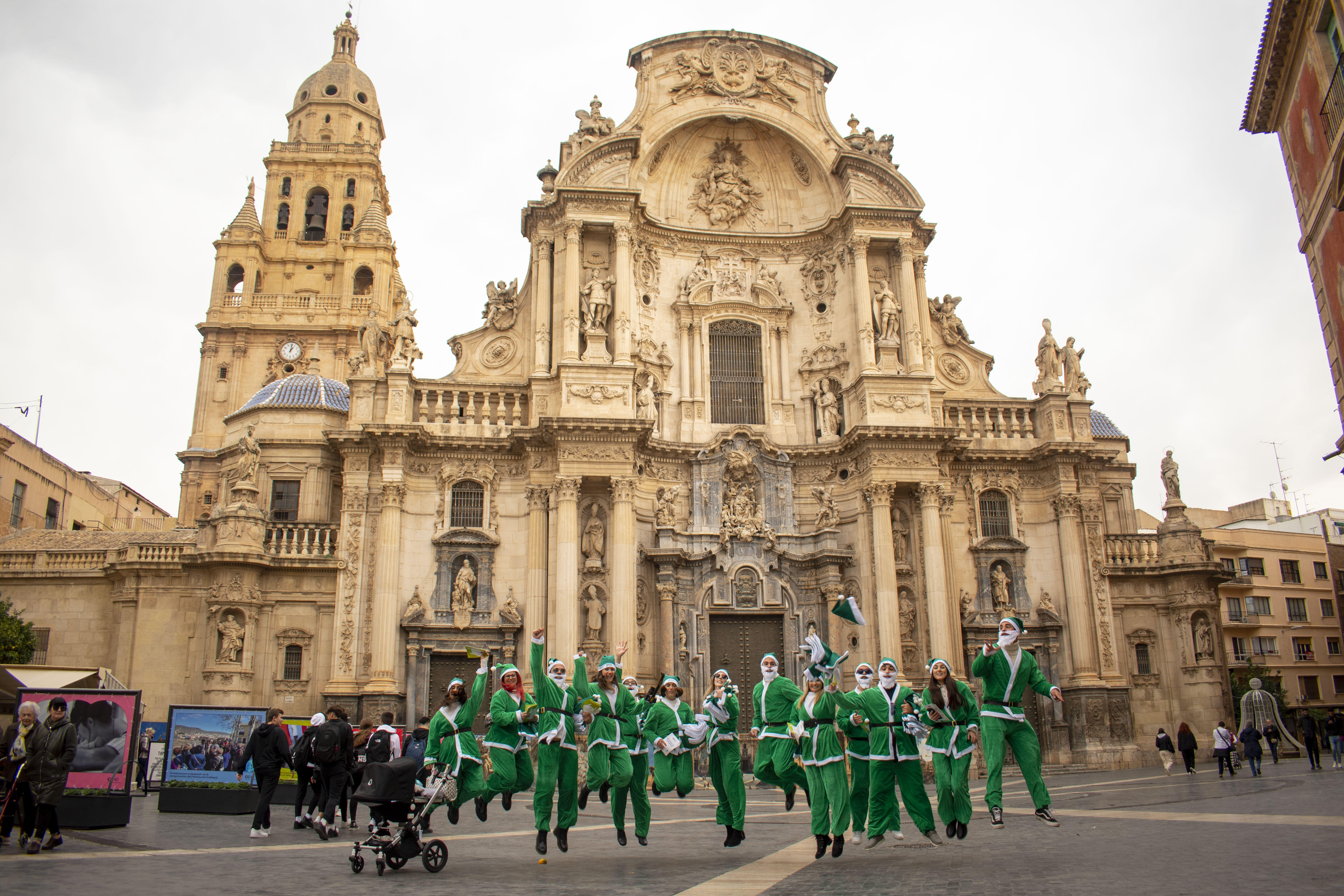Gesa ha inundado el centro de Murcia con decenas de Papá Noel verdes con el objetivo de recaudar alimentos en beneficio a Cáritas.