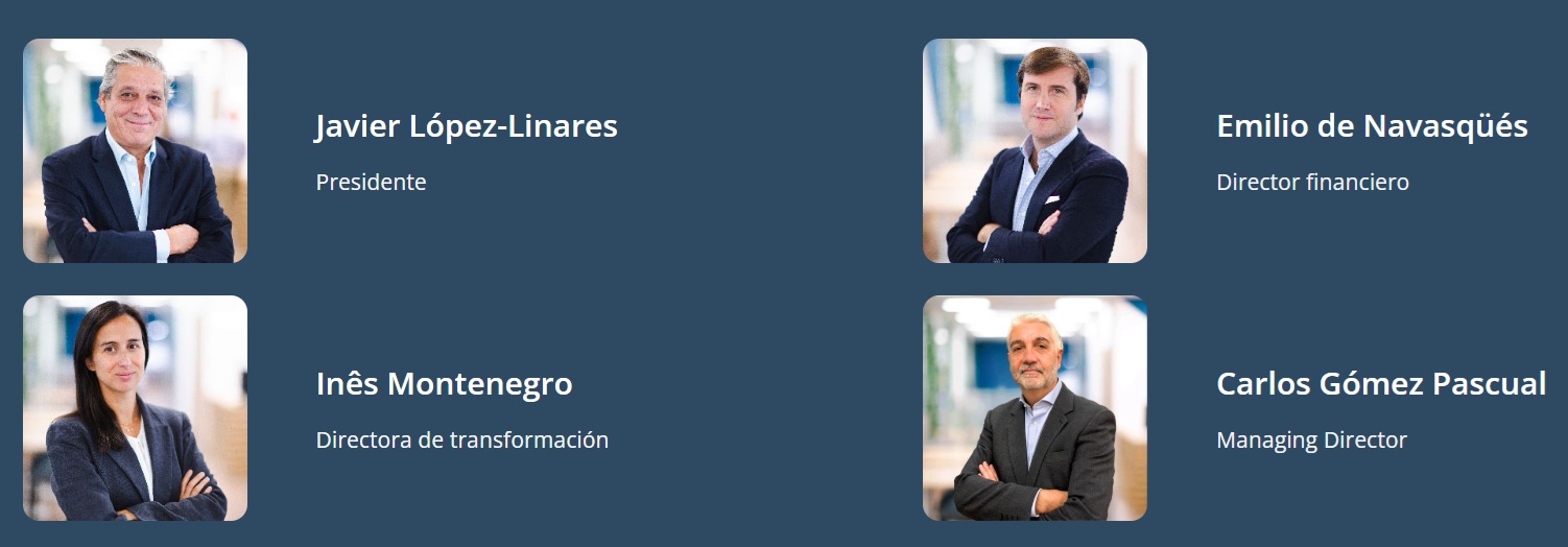 El Grupo está centrado en la ejecución de su Plan Estratégico, su compromiso con el crecimiento sostenible, apoyado en el cross selling entre áreas y países y el crecimiento inorgánico tal y como ha determinado su comité de dirección liderado por Javier López-Linares, presidente ejecutivo y fundador, e integrado por Emilio de Navasqüés, CFO, e Inés Montenegro, CTO, y con Carlos Gómez Pascual al frente de la gestión ejecutiva como managing director del grupo.