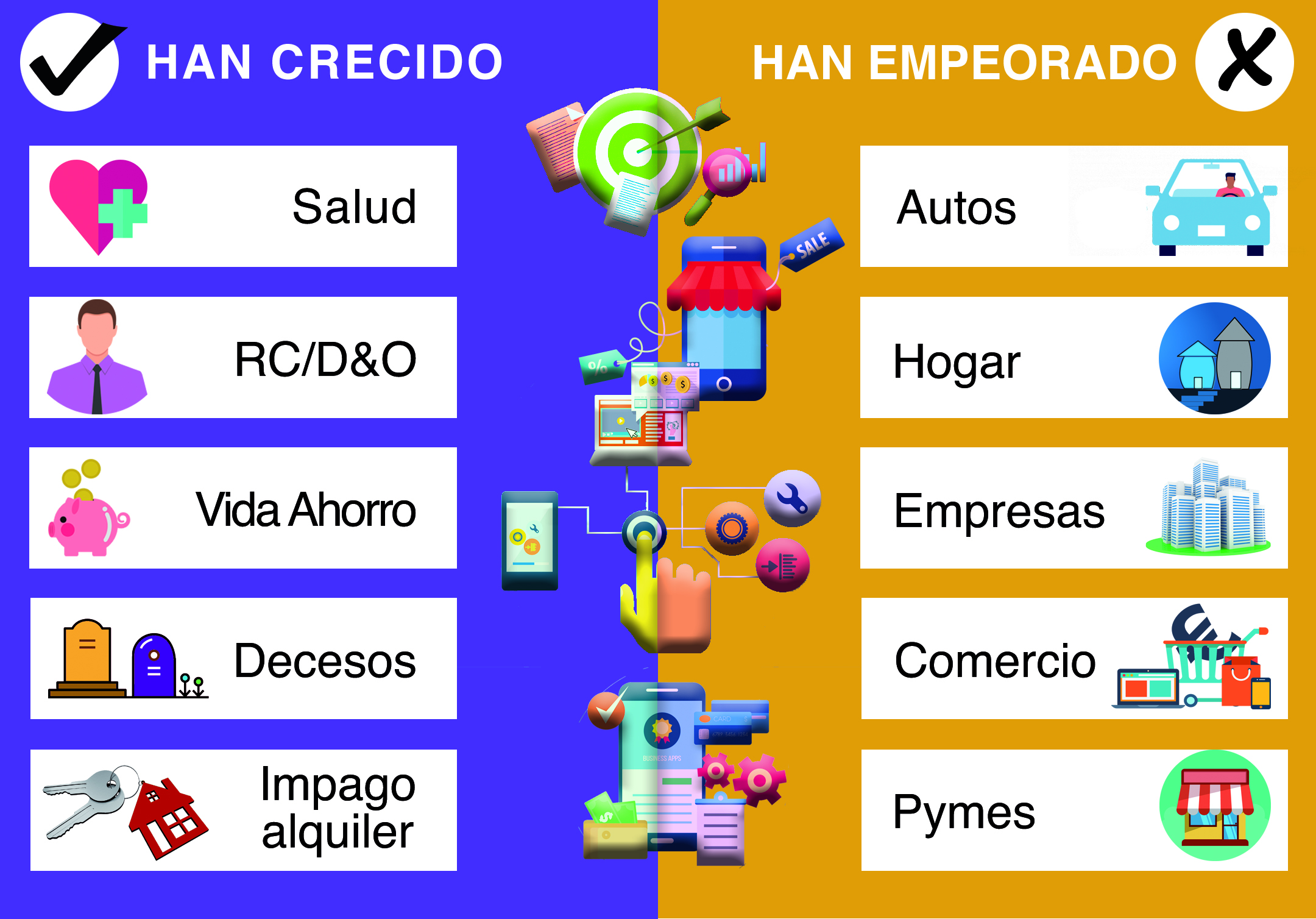 Pero como decimos, de forma general estos dos ramos se han visto envueltos en problemas en los últimos tiempos y de hecho un 22,5% de los encuestados señala que tanto Autos como Hogar son los dos ramos en los que más han empeorado sus ventas en el semestre.
