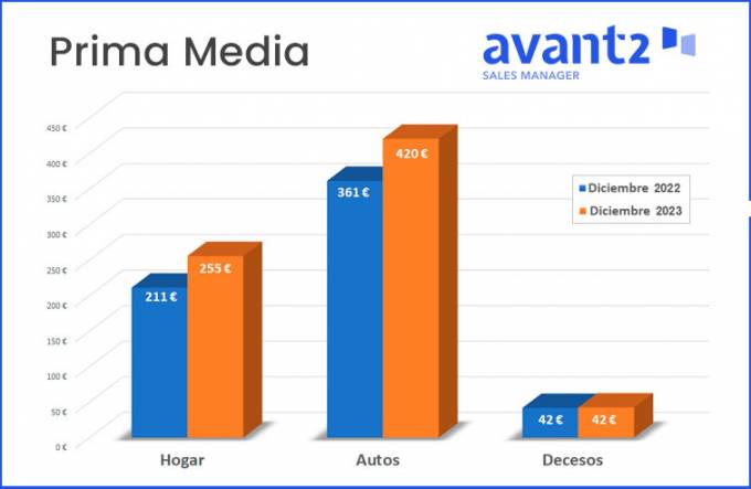 En el caso de Autos mantuvieron su tendencia alcista continuando con un incremento del 16% en la prima media de nueva producción en comparación con el mismo mes del año anterior. Atendiendo a las modalidades "Todo riesgo con franquicia alta" es la modalidad con la prima media más elevada de todo el ramo llegando a 818 euros, lo que supone un 25% de incremento respecto a diciembre de 2022. Por otro lado, la modalidad de «Terceros ampliados». continúa absorbiendo el mayor porcentaje de pólizas de automóviles emitidas de nueva producción en Avant2 Sales Manager llegando al 60% sobre un total de 32.732 pólizas emitidas. con una prima media de 374 euros.
