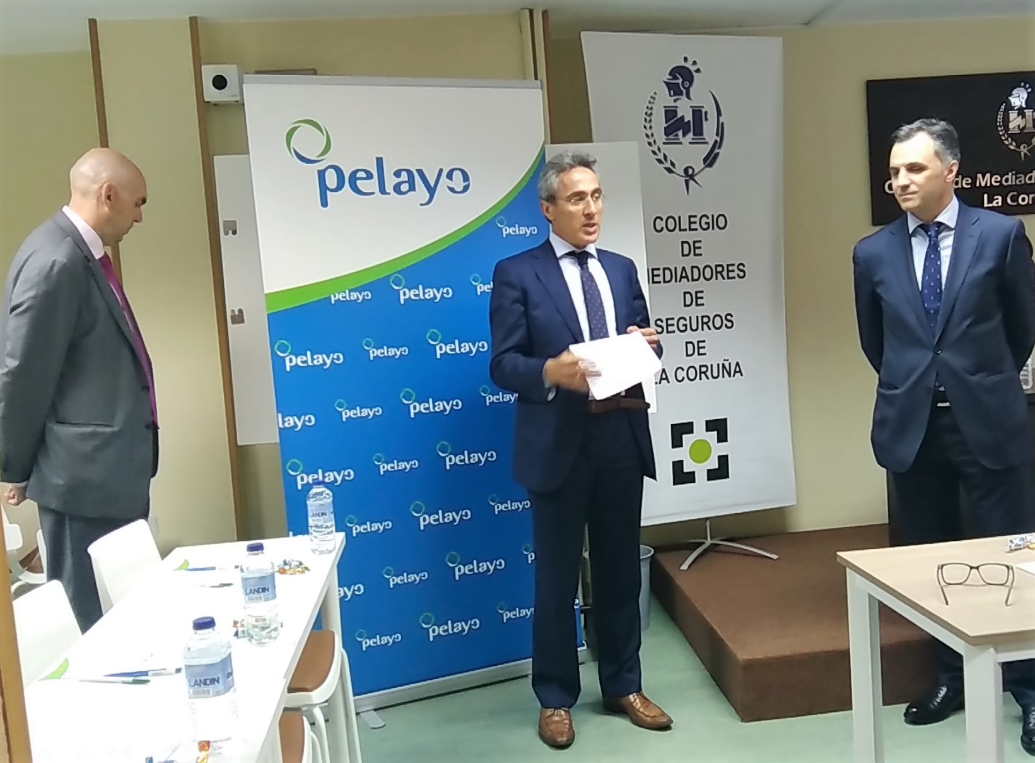 Víctor L. García, vicepresidente de la entidad, presentó al ponente Carlos Miranda, gerente de daños personales de Pelayo con amplia experiencia en siniestros, que estuvo acompañado por Joaquín Peña, responsable del Canal Corredores Norte; Fernando Grela Rumbo, gerente Canal Corredores de Galicia y Sonia Prieto Prieto, gerente Canal Agentes de Galicia.