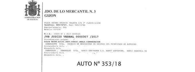 "No puede reconocerse legitimación activa al Colegio de Mediadores de Seguros para la acción de cesación ejercitada en su demanda". De esta manera el Juzgado de lo Mercantil Nº3, con sede en Gijón, pone fin al primer juicio de la mediación contra bancaseguros que se inició a finales de octubre y que el propio juez paró para analizar si el Colegio de Asturias estaba legitimado para presentar esta demanda como le solicitaban los demandados Banco Popular y Banco Sabadell.