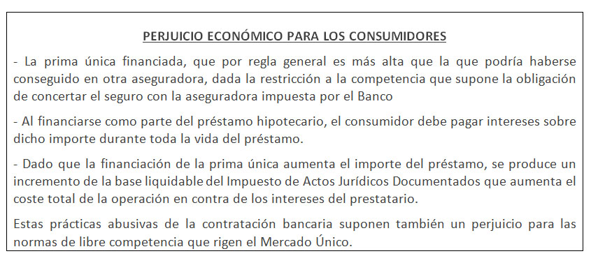 En su demanda, el colegio solicitaba que se declare la nulidad de la condición general de la contratación introducida en los documentos de préstamos hipotecarios formalizados por ambos bancos demandados por considerarlos abusivos. Pedía también la condena a ambas entidades financieras para que eliminen de sus condiciones generales la citada condición general de contratación. Destacaba el colegio que en base a las cláusulas los consumidores han tenido que pagar cantidades que incrementaban "considerablemente" el precio de los préstamos, por lo que han sufrido un perjuicio económico, considera la institución.