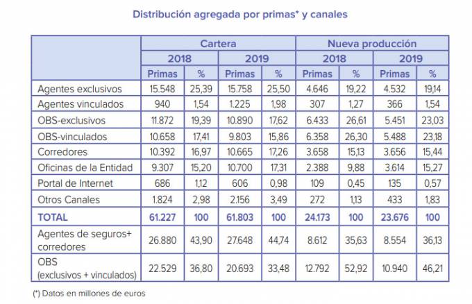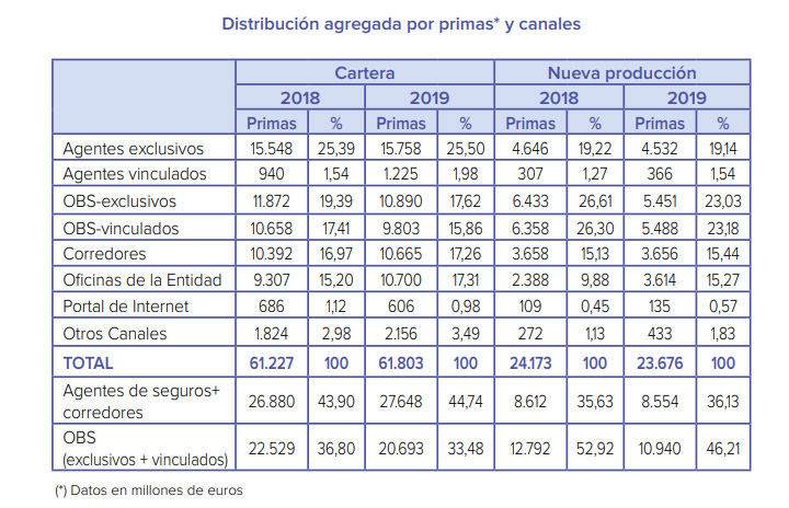 Estos datos indican que mientras que los corredores y agentes aumentaron su cuota respecto al año anterior en casi un punto, los OBS retrocedieron en 3,3%.